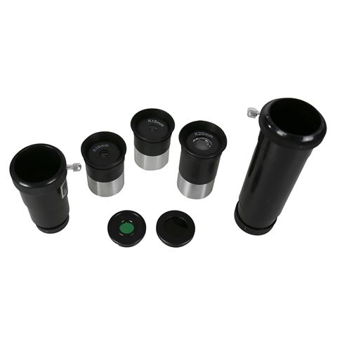 Incluido: 1x telescopio reflector Byomic G 114/900 1 trípode de aluminio ajustable con soporte para ocular 1 montura ecuatorial 1 contrapeso de 2,5 kg 1 ocular de 10 mm Ø1,25" 1 ocular de 15 mm Ø1,25" 1 ocular de 20 mm Ø1,25" 1 lente Barlow con aumento de 2x 1 prisma invertido con aumento de 1,5x 1 buscador LED 1 tapa para lente con abertura para reducir la luz 1 filtro ocular Sunshine 1 filtro ocular Moonshine 1 llave Allen