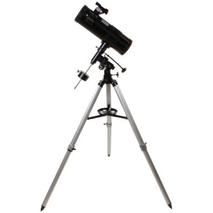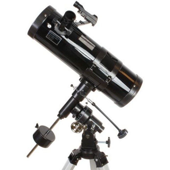 Inclus : Télescope réflecteur P 114/500 Coffret cadeau Trépied en aluminium réglable avec support pour oculaires Monture avec contrepoids de 2,5 kg 3 oculaires : 20, 15 et 10 mm Lentille de Barlow 2x Chercheur LED « Red Dot » Cache-objectif avec ouverture centrale pour réduire la lumière Filtre solaire pour oculaire Filtre lunaire pour oculaire Clé à six pans creux